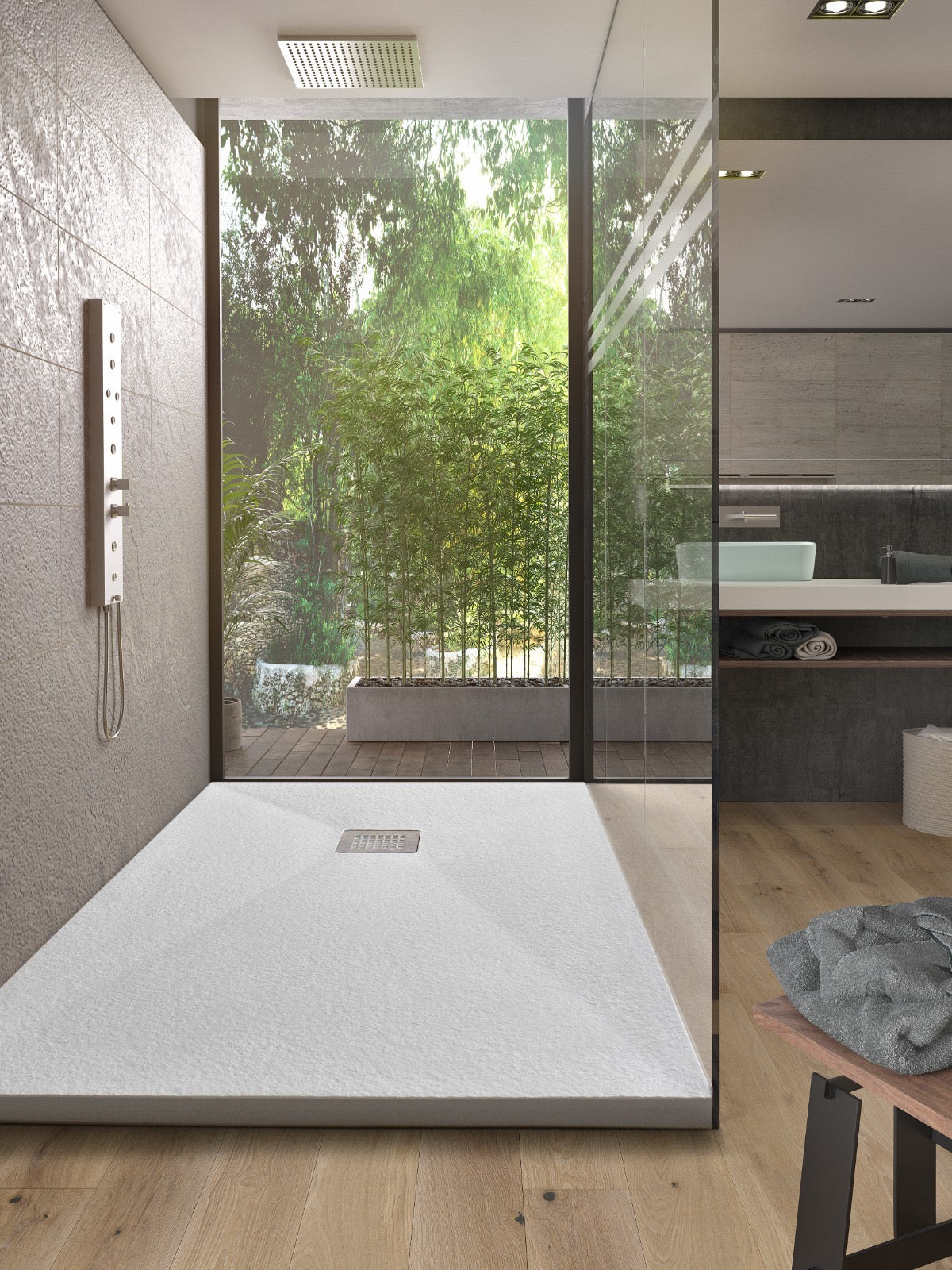 Los platos de ducha están fabricados a partir de resinas de poliéster y cargas minerales de última generación con diferentes granulometrías tales como dolomitas y calcitas.